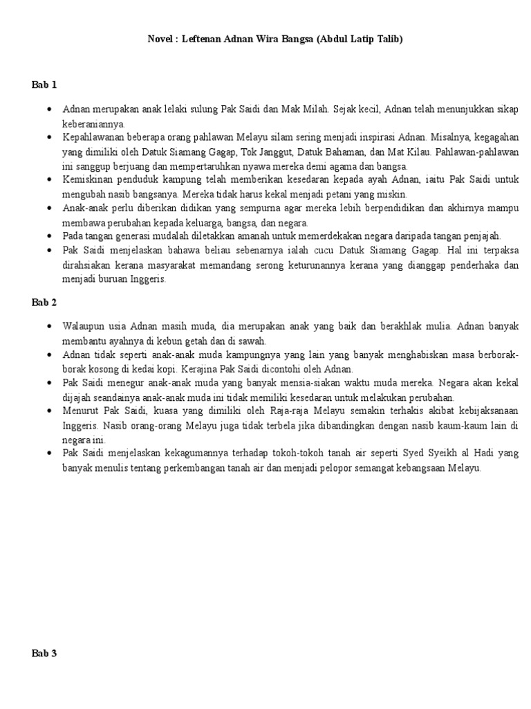 Nota Ringkas Novel Leftenan Adnan Wira Bangsa Flip Ebook Pages 1 15 Anyflip